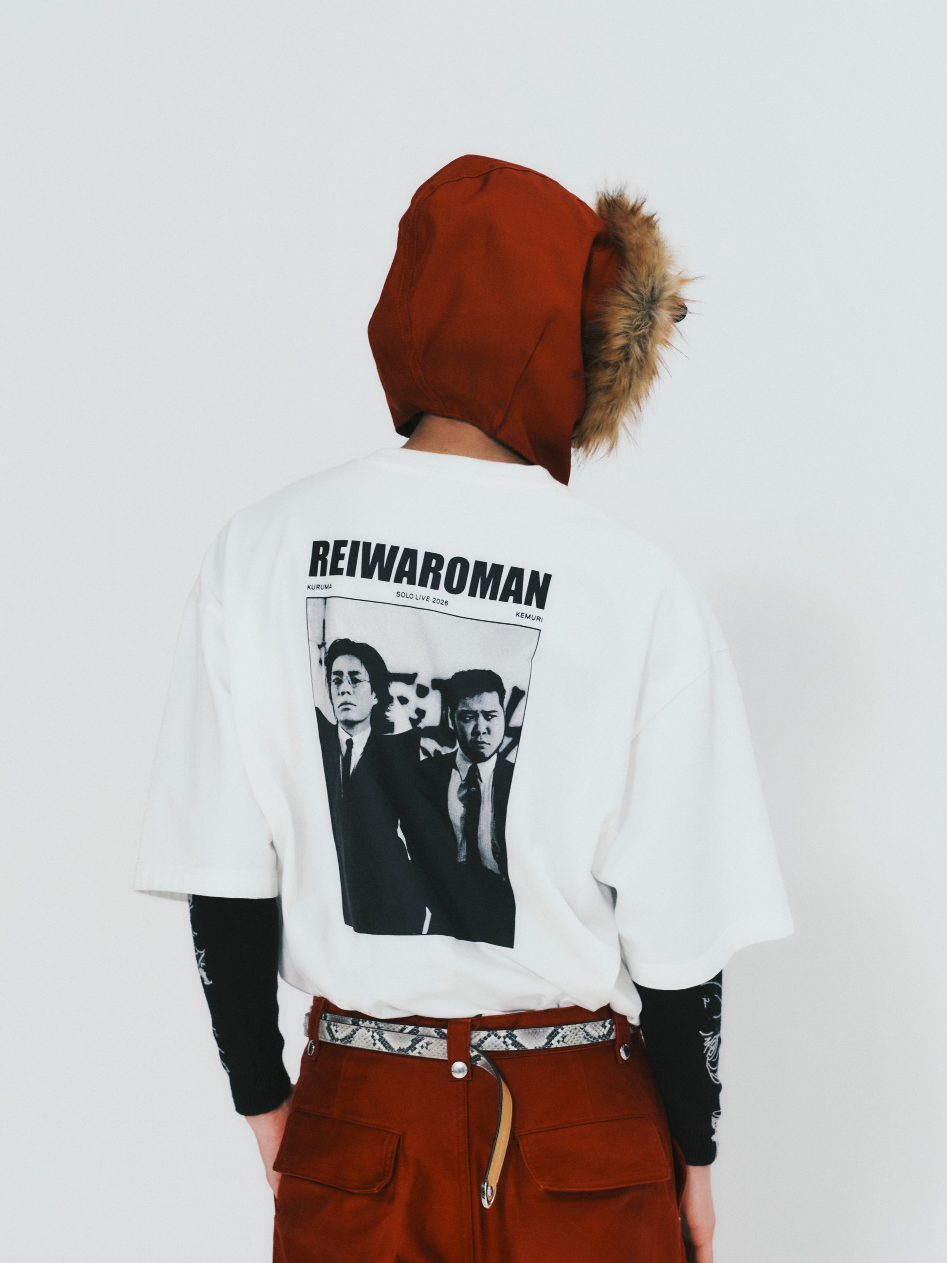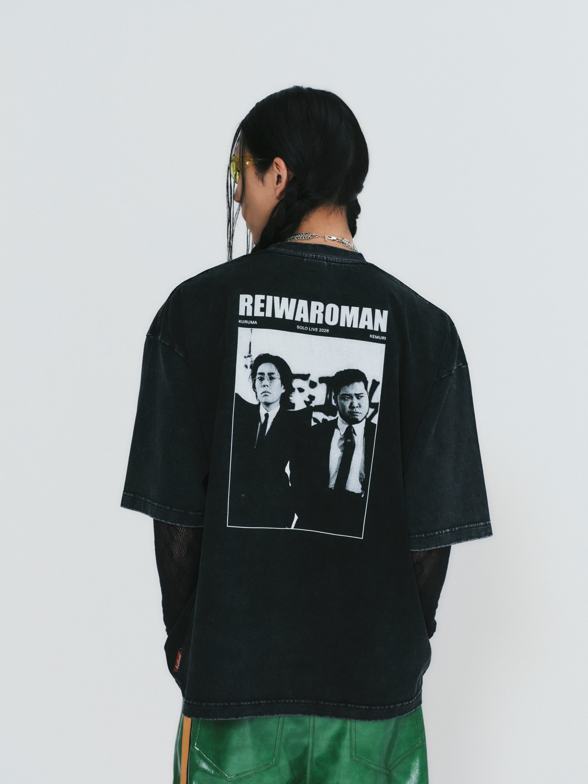 には令和ロマンのビジュアルを大胆にプリント。キッズと同一デザインで、親子でのリンクコーデも可能。