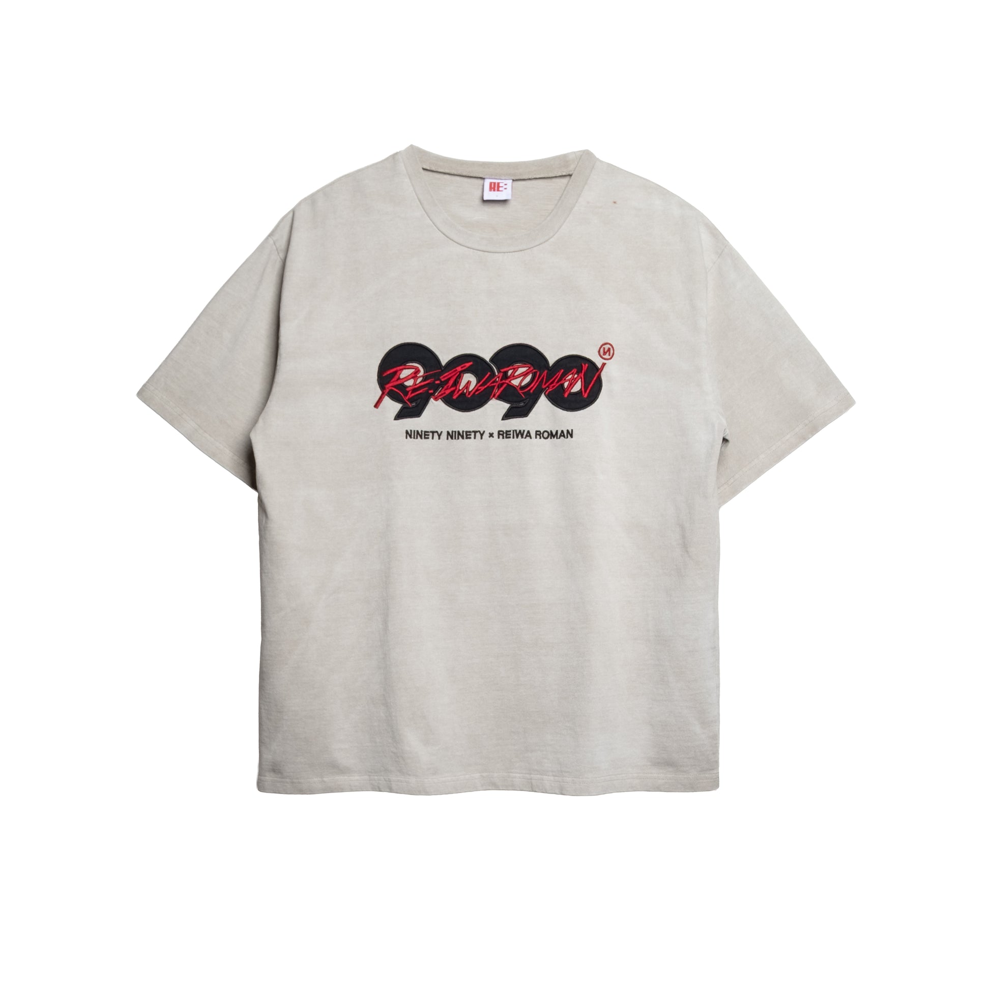 ブランド定番の9090OGロゴに、RE:IWAROMANの刺繍を落とし込んだロゴTシャツ。ボディは全体的にヴィンテージ加工がされており、新品だけど古着らしさも感じるデザイン。